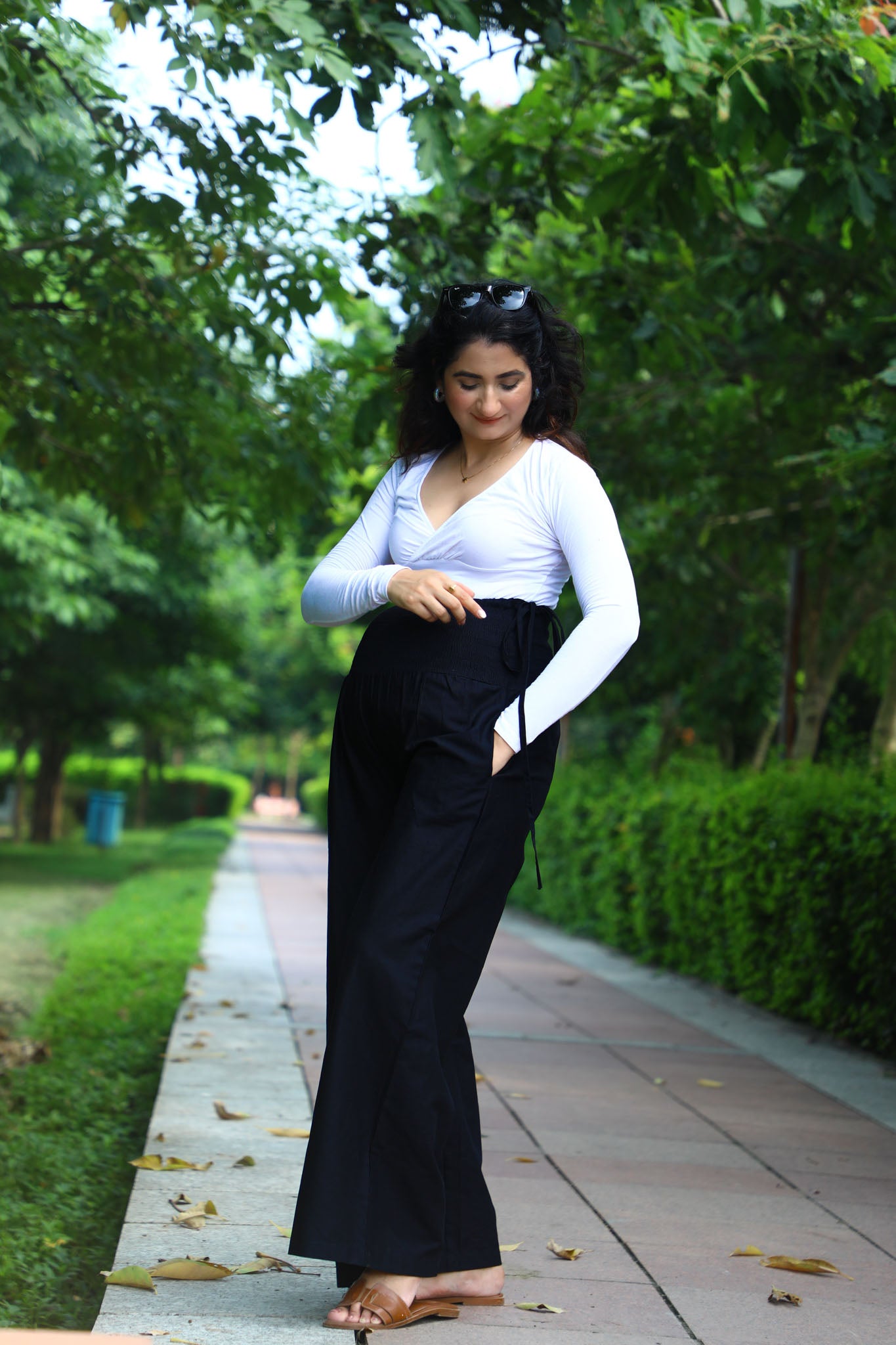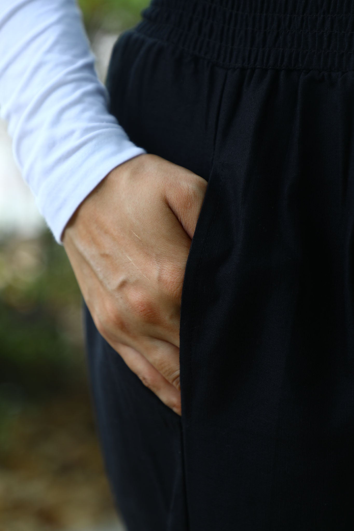 Crafted from Premium Cotton Linen blend, these pants are super soft on your skin and durable enough to keep up with your journey. The wide smocked waist gently stretches to accommodate your growing bump, offering support without any pressure.